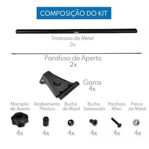 Projetado e desenvolvido para suportar até 45 kg de peso máximo, desde que distribuído de forma uniforme e equilibrada; Manual de instruções, para orientar a montagem, sua capacidade de transporte, regras de utilização e outros informes; Não amassa e nem risca o veículo; Cor preto; Fabricado em aço; Não exige furações; Fácil instalação; Ótimo acabamento; Excelente resistência.
