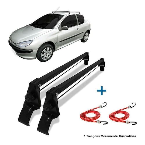 Rack teto bagageiro + 2 elasticos peugeot 2 ptas 206/207 A vhip desenvolveu esse rack sob rigoroso controle de qualidade, cujo processo industrial, segue os padrões de segurança, com acompanhamento e supervisão técnica contínua, visando proporcionar ao consumidor, uma excelente alternativa no transporte de bagagens ou cargas. Especificação técnica: Projetado e desenvolvido para suportar até 45 kg de peso máximo, desde que distribuído de forma uniforme e equilibrada; Manual de instruções, para orientar a montagem, sua capacidade de transporte, regras de utilização e outros informes; Não amassa e nem risca o veículo; Cor preto; Fabricado em aço; Não exige furações; Fácil instalação; Ótimo acabamento; Excelente resistência. Ficha técnica: fabricante: vhip; material: ferro tubular / aço; capacidade de carga do rack: 45kg distribuídos cor: preto. Conteúdo da embalagem: 2 racks dianteiro + traseiro ; kit instalação; manual; 2 elasticos extensor. Atenção:O envio do elastico extensor ocorre de forma aleatória, conforme disponibilidade de cores em estoque Instalação do produto:Nossos produtos acompanham manual de instalação, se por algum motivo não conseguir instalar, favor entrar em contato conosco atraves do bilhete colado na caixa do produto. Temos uma equipe especializada para te ajudar.