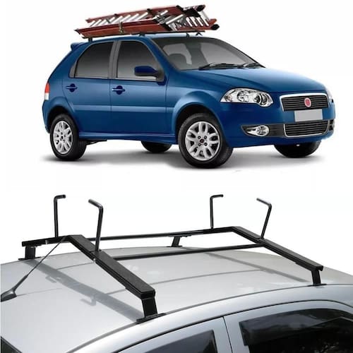 - sendo na linha pesada 300mm de solda e na linha econômica sao 230mm. - são fabricados com chapas de 1,2mm. - apoio das escadas com chapas 2mm. - recomendado peso máximo 80kg. - pés auto-reguláveis, os quais permitem um excelente apoio no teto dos carros. - pés auto-reguláveis, o que permite ser ajustado para varios veiculos linha leve 2 ou 4 portas e todos os anos de fabricação. - transporta até 02 escadas;