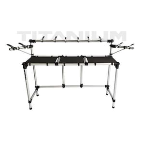 Configurações Sugeridas: • Barras "L" p/ acomodar Notebook e 2 CDJs • Bandejas MDF (revestido em EVA) p/ acomodar 2 Pick-ups Toca Discos e 1 Mixer • Braços extensores laterais p/ Monitores de Referencia ate 8 polegadas