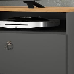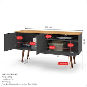 Fabricado com MDP de alta qualidade e pés em madeira maciça, o Rack Topazio destaca-se pela sua durabilidade e resistência, representando um investimento de longo prazo. Com três portas espaçosas, oferece um amplo espaço para acomodar eletrônicos, filmes, livros e outros objetos. O design basculante em uma das portas, aliado aos puxadores em metal, adiciona um toque de charme inigualável ao seu lar.