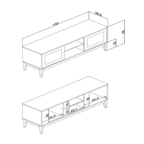 MDPO rack MB 1003 possui estrutura em MDP 15mm e acabamento em pintura UV. Costas 3mm. Possui 1 prateleira que suporta 5kg, 2 portas de bater com dobradiças metálicas e puxadores do produto são alça em couro. Produto possui 5 pés em madeira maciça com altura de 20cm. Tampo em MDP 15mm. Produto suporta até 25kg. Conteúdo da embalagem: móvel, ferragens e manual de montagem. A fixação das peças e/ou acessórios é feita por parafusos, cavilhas e minifix. Para uma limpeza mais efetiva, utilizar apenas pano macio umedecido e sabão neutro. Não utilizar produtos abrasivos. Garantia de 03 meses contra defeitos de fabricação. Medidas do produto (AxLxP): 58x135x38,5cm. Peso do produto: 22kg.
