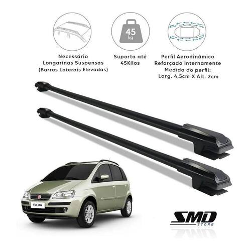 Rack Travessa De Teto Aluminio Fiat Idea 2004 A 2016 Preta Preto Especifico