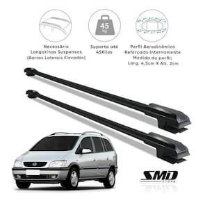 Rack Travessa De Teto Aluminio Gm Zafira 1998 A 2012 Preto Preto Especifico Zafira com longarinas no teto barras suspensas de teto - 1998 a 2012