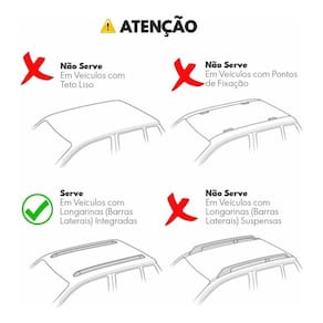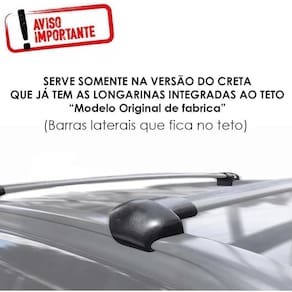 Rack Travessa De Teto Hyundai Creta 2017 A 2021 Cor Prata Prata Especifico Par de travessas de teto hyunday creta 2017 a 2021 Não serve na versão pcd Não serve no novo creta 2022 Fixado nas longarinas integradas barras laterais do teto. Cor disponível: - prata Compatível com todas as versões com longarinas integradas barras laterais : - creta 2017 - creta 2018 - creta 2019 - creta 2020 - creta 2021 Sugestão de uso: Para transportar todo tipo de bagagem e equipamento esportivo. Podem ser utilizados como base para a instalação de outros acessórios, como bagageiros fechados ou abertos, suportes de bicicletas, pranchas de surf, escadas e etc. Observações importantes: Verifique a capacidade de carga do teto do seu carro no manual do proprietário do veículo. Respeite sempre a capacidade de carga estipulado no manual. As travessas poderão causar ruídos devido ao corte de vento, no entanto o perfil aerodinâmico desta travessa reduz consideravelmente, mas não o elimina. Não é caracterizado defeito no produto eventuais ruídos Composição do kit: - 2 travessas - kit de proteção à base de material eva para fixação nas ponteiras das travessas. - não acompanha ferramenta de aperto chave allen 5 Ficha-técnica: - material: alumínio ponteiras e perfil - 1 pino guia para o melhor travamento de cada ponteira. - design do perfil: aerodinâmico - medidas do perfil: 7 cm larg. X 2 cm alt. - pintura: eletrostática, super resistente - instalação: nas longarinas integradas já existente no teto do veículo - capacidade de carga: 45kg distribuídos verificar a capacidade de carga de seu veículo - borracha centralizada no perfil para maior aderência de sua bagagem - perfil reforçado internamente - sistema - t track - no perfil, facilita a instalação de acessórios. - perfil levemente arqueados para acompanhar curvatura do teto Importante: de 1 ano por defeito de fabricação diretamente com o fabricante. Valor do par. Imagens meramente ilustrativas. Recomendamos que a instalação seja feita por profissional especializado e não nos responsabilizamos pelo mau uso do produto. Nosso horário de atendimento é de segunda a sexta das 9 as 17 horas exceto feriados . Boa compra... Atenção: as compras realizadas em nome de pessoa jurídica estão sujeitas à cobrança de icms, conforme protocolo icms 41, de 4 de abril de 2008. Caso você tenha dúvidas sobre o percentual a ser aplicado, consulte a cláusula segunda, 1 do referido protocolo. Marca: Não Informado