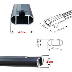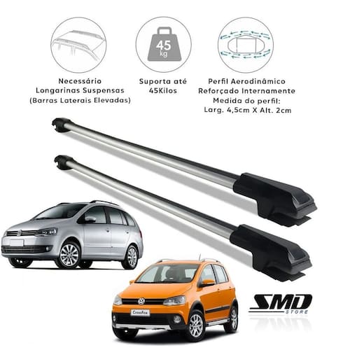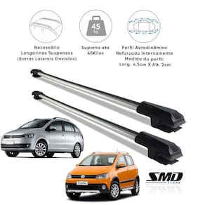 Rack Travessa Teto Vw Crossfox Spacefox Fox Xtreme Track Prata Especifico Par de Travessa De Teto na Cor Preto com Prata - Modelo Travessa de 4,5 cm larg x 2 cm altura