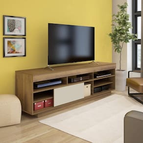 Rack Treviso Para Sala Tv 75" Com 6 Nichos Prateleira e Porta Pinho / Off White -