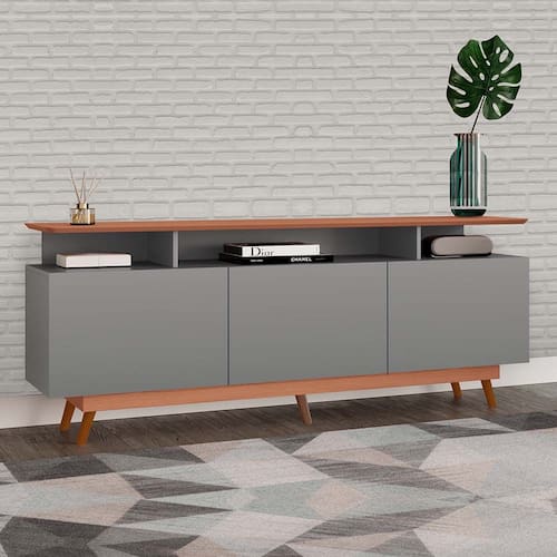 Apresentamos o Rack Tainá. Ele combina funcionalidade e estilo com seu design moderno e elegante. Equipado com três portas basculantes, oferece amplo espaço de armazenamento para diversos itens. Com capacidade para TVs de até 55 polegadas, é ideal para qualquer sala de estar. Seu acabamento Soft 45° adiciona um toque de sofisticação, enquanto seus cinco pés garantem estabilidade e durabilidade. Ideal para quem busca praticidade e elegância na decoração de interiores.