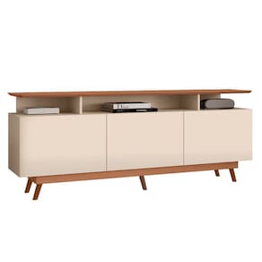 Apresentamos o Rack Tainá. Ele combina funcionalidade e estilo com seu design moderno e elegante. Equipado com três portas basculantes, oferece amplo espaço de armazenamento para diversos itens. Com capacidade para TVs de até 55 polegadas, é ideal para qualquer sala de estar. Seu acabamento Soft 45° adiciona um toque de sofisticação, enquanto seus cinco pés garantem estabilidade e durabilidade. Ideal para quem busca praticidade e elegância na decoração de interiores.