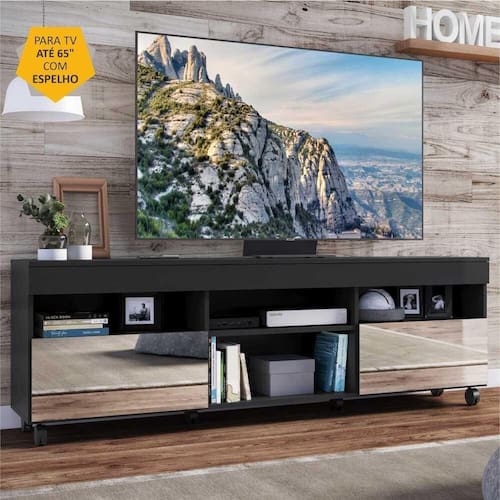 Conteúdo da Embalagem: 1 (um) Rack para TV 1 (um) Kit com 6 (seis) rodízios 1 (um) Kit com 2 (dois) Espelhos
