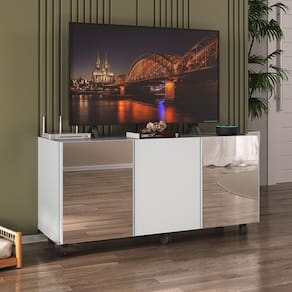 O Rack TV até 32 Polegadas 3 Portas com Rodízios e Espelhos Multimóveis MP1076 é o móvel perfeito para completar a decoração da sua sala de estar com estilo. Fabricado em MDP (15mm) com acabamento acetinado (cerca de 20% de brilho), garante durabilidade e resistência. Com 3 portas, você terá amplo espaço interno para guardar objetos e manter sua sala sempre organizada. Suporta TV de até 32 polegadas (até 10kg). Seu design clean proporciona um visual moderno e sofisticado ao ambiente. Além disso, o móvel conta com rodízios que facilitam a sua movimentação e a limpeza do ambiente. Os espelhos são de vidro, evitando que a imagem fique distorcida, e lapidados (passam por um processo para que as bordas não fiquem cortantes), garantindo maior segurança e deixando o móvel mais requintado. Conteúdo da Embalagem: 1 (um) Rack com Espelho Manual de Montagem Kit Ferragem