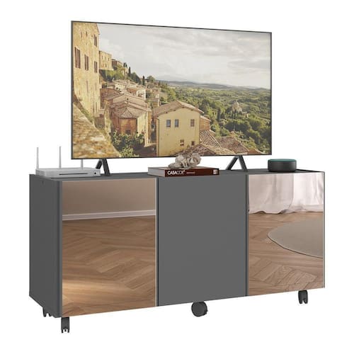 Rack Tv Até 32 Polegadas Com Rodízios E Espelhos Mp1076 Grafite Grafite - Cinza