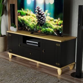 Rack TV Retrô 2 Portas 1 Gaveta - Preto/Marfim