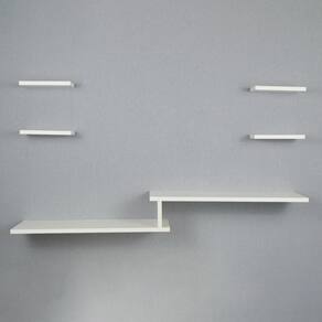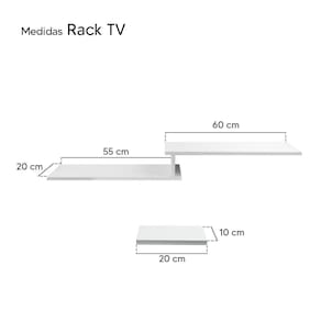O kit é composto por 5 peças: 01 Rack medindo: 115cm de Largura x 20cm de Profundidade. 04 Prateleiras medindo: 20cm de Largura x 10cm de Profundidade.