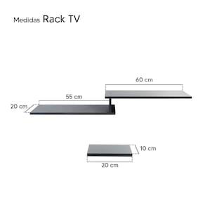 O kit é composto por 5 peças: 01 Rack medindo: 115cm de Largura x 20cm de Profundidade. 04 Prateleiras medindo: 20cm de Largura x 10cm de Profundidade.