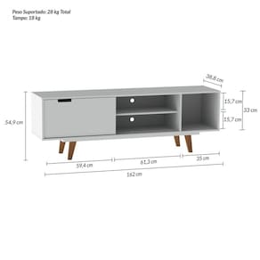 - Tamanho: Grande - Formato do Móvel: Rack - Peso do Produto Montado: 28 - Peso Máximo Suportado: 30 - Medida do Produto Montado (LXCXA): 38,8cmX162cmX54,9cm - Acabamento: Pintura UV - Escala de Brilho: Acetinado - Material da Estrutura: MDP e MDF de 15 e 25mm - Produto Necessita de Montagem?: Sim - Tipo de Gaveta: Não Possui - Quantidade de Pés: 4 - Tipo de Pés: De Madeira - Quantidade de Portas: 1 - Tipo de Porta: De Correr - Quantidade de Prateleiras: 2 - Tipo de Prateleira: Fixa - Quantidade de Nichos: 1 - Recomendações de manutenção: Pano úmido. Não aplicar lustra móveis - Tamanho Máximo da Tv: Até 60 Polegadas - Volumes: 1 - Garantia: 3 Meses - Quantidade de Nichos: 1