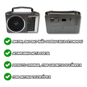 Seja bem-vindo à uma experiência de compra incrível Queremos proporcionar a melhor experiência de compra para você O rádio é bivolt, tanto o preto quanto o prata Funciona com energia elétrica 110/220v bivolt ou com 2 pilhas grandes d. Um produto de alta qualidade que você não pode deixar de ter em casa Este rádio é perfeito para quem busca uma experiência completa de áudio. Além disso, sua alimentação pode ser feita por cabo removível ou pilhas, oferecendo flexibilidade e praticidade. Com um design moderno e elegante, o rádio livstar é ideal para complementar a decoração da sua casa, além de ser extremamente fácil de usar. Basta sintonizar sua estação favorita e desfrutar de uma qualidade sonora incomparável. Com o rádio livstar, você pode ouvir notícias, músicas, programas de entretenimento e muito mais, tudo com uma qualidade de som excepcional. E o melhor de tudo: com a opção bivolt, você pode usar o rádio em qualquer lugar do brasil, sem se preocupar com a voltagem local. Não perca a oportunidade de adquirir o seu rádio e desfrutar de uma experiência única de áudio. Compre agora e tenha a de qualidade e satisfação que só a marca livstar pode oferecer Especificações técnicas: - marca: livstar - cor: prata prateado - fácil de carregar - possui alça para transporte - funciona com energia elétrica 110/220 bivolt ou pilhas para você se divertir onde e quando quiser. - medidas: largura 16 cm, profundidade: 6 cm, altura 11 cm - antena telescópica - controle de ajustes de banda - controle de volume - entrada para cabo de força - alto falante - não tem entrada para fone de ouvido - compartimento para 2 pilhas grandes não inclusas - não tem bluetooth Contéudo da embalagem: - 1 rádio portátil - 1 cabo - 1 manual de instruções Peso aprox.: 595 g Composição: plástico com componentes eletrônicos - a postagem é feita em até 24 horas úteis após o recebimento do pedido. - após receber sua compra, avalie sua experiência conosco sua opinião sincera é muito importante para que possamos sempre estar evoluindo e melhor atendê-los Agradecemos sua visita Atenciosamente, grupo luna presentes, day lunaeggamer: Homologação Anatel: 164712304809