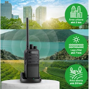 Comunicação imediata e confiável | 16 canais | Bateria de lítio de 1100 mAh | Recarga rápida de 3,5 h | Compatível com carregadores portáteis USB | Compatível com fones de ouvido | Áudio alto e nítido | Homologado pela AnatelIndicador de carga da bateria