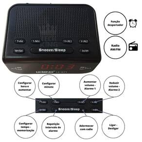 Rádio digital relógio despertador alarme duplo lelong le-671 Cor: preto - qualidade garantida. - atendimento qualificado. - enviamos para todo o brasil. - compra garantida. - despachamos em até 1 dia útil após confirmação do pagamento Garantimos a devolução por arrependimento em até 7 dias, após o recebimento e garantia de 15 dias contra defeitos de fabricação. Descrição do produto: Usabilidade:Definição simples do relógio para configurar a hora e o alarme sem necessitar de instruçõesPossui regulagem de luminosidadeAcorde ao som da sua estação de rádio favorita ou de um alarmeTemporizador para adormecer ao som da sua música favoritaRepetição do alarme para dormir mais um poucoCom o uso das pilhas você assegura a conservação da memória em casos de quedas de energia O visor amplo permite uma fácil leitura do conteúdo no ecrã. Agora, pode ver as horas e o alarme facilmente, mesmo à distância. Ideal para pessoas de idade mais avançada ou com problemas de visão. Sintonizador am/fmSintonizador estéreo am/fm Definição simples do relógioA hora e o alarme são tão fáceis de configurar que provavelmente nem será necessário consultar o manual de início rápido ou as instruções de utilização. Basta observar os botões do rádio relógio para definir a hora e o alarme. Acorde com o rádio ou aviso sonoroDesperte ao som da sua estação de rádio favorita ou de um sinal sonoro. Defina o alarme no seu rádio relógio lelong para acordar com a estação de rádio que ouviu por último ou escolha acordar com um sinal sonoro. Alarme duploO sistema de áudio inclui duas horas de alarme diferentes. Defina uma hora de alarme para o acordar e outra hora de alarme para acordar outra pessoa. Repetir alarmePara evitar que adormeça e se atrase,ele possui função de repetição do alarme. Se o alarme tocar e quiser dormir mais um pouco, basta premir uma vez o botão de repetição do alarme e voltar a dormir. Nove minutos depois o alarme volta a tocar. Pode continuar a premir o botão de repetição do alarme a cada nove minutos até o desligar totalmente. TemporizadorO temporizador permite-lhe decidir durante quanto tempo pretende ouvir música - ou uma estação de rádio à sua escolha - antes de adormecer. Basta definir um limite de tempo até 1 hora e escolher uma estação de rádio para ouvir enquanto adormece. Características:Peso bruto: 418gPeso líquido: 318gDimensões: 116x92x45mmTela: 0,6Cabo energia: 1,10mCabo antena: 0,80cm