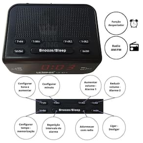 Rádio digital relógio despertador alarme duplo lelong le-671 Cor: preto