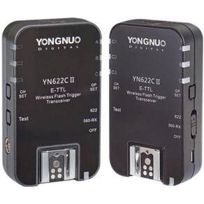 Acione flashes sem fio com este pacote de 2 transceptores de flash sem fio yn-622c ii e-ttl da yongnuo. Compatível com câmeras canon e-ttl / e-ttl ii e com suporte adicional para protocolos de comunicação 622 e 560-rx, este conjunto funcionará bem com muitas unidades de flash. Para uso, um transceptor desliza diretamente para a sapata e utiliza uma frequência de 2,4 ghz com um alcance de 328 pés para acionar os flashes remotos montados no outro transceptor. Uma variedade de recursos foram adicionados ao modelo, incluindo suporte para proporções de grupo e flash múltiplo. Os transceptores também têm uma sapata e uma porta de sincronização de pc disponível para montar uma unidade de flash ou conectar a um estroboscópio. Quando conectado a um strobe através da porta de sincronização do pc, uma função super sync permitirá que os fotógrafos alcancem uma velocidade de sincronização mais rápida do que normalmente possível com sua câmera. Além disso, existem modos de flash ttl e manual disponíveis para controle criativo total. E pode utilizar 7 canais e 3 grupos para configurar várias unidades de flash de forma fácil e eficiente.
