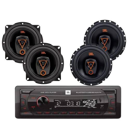 Rádio JBL Celebrity 100 Bluetooth/USB/SD/FM/Auxiliar + 2 Alto Falantes JBL 5TRMS80 - 160 Watts Rms + 2 Alto Falantes JBL 6TRMS80 - 160 Watts RmsO Rádio JBL Celebrity 100 é a opção ideal para quem busca um sistema de áudio completo e de alto desempenho em seu veículo. Com recursos como conectividade Bluetooth, USB, SD e entrada auxiliar, você pode reproduzir suas músicas favoritas de diversas fontes com praticidade. Além disso, o rádio FM integrado permite sintonizar suas estações de rádio preferidas. O kit inclui dois alto-falantes JBL 6TRMS80 e dois alto-falantes JBL 5TRMS80, proporcionando uma potência total incrível. Com essa combinação, você desfrutará de um som envolvente, nítido e potente, levando sua experiência musical no carro a outro patamar. O Rádio JBL Celebrity 100 junto com os alto-falantes JBL 6TRMS80 e 5TRMS80 garantem uma qualidade sonora excepcional para suas viagens.Especificações Técnicas: 02 Auto Falante 6 Polegadas Jbl 160w Rms Par Triaxial 6trms80• Alto-falante de 3 vias de 6-1 /(160 mm)• Tweeter Dinâmico• Resposta de Frequência: 60 – 20000 Hz• Sensibilidade: 87 dB (1W@1m)• Impedância: 4 OHMS• Potência RMS (Peça): 80W RMS• Potência RMS (Par): 160w RMS• Bobina: 31,7mm• Tweeter: 36mm• Ferrite Diâmetro: 85x15mm• Cone: PP02 Auto Falante 5 Polegadas Jbl 160w Rms Par Triaxial 6trms80• Alto-Falante de 3 Vias de 5-1 /(165 mm)• Tweeter Dinâmico• Resposta de Frequência: 76 – 20000 Hz• Sensibilidade: 87 dB (1W@1m)• Impedância: 4 OHMS• Potência RMS (Peça): 80W RMS• Potência RMS (Par): 160w RMS• Bobina: 31,7mm• Tweeter: 32mm• Ferrite Diâmetro: 85x15mm• Cone: PPSom Automotivo Jbl Celebrity 100 Mp3 Usb Bluetooth Sd• Fonte de Alimentação: 12 V DC• Potência: 4 x 20 W RMS• Fusível: 10 A• Resposta de Frequência: 20 Hz - 20 kHz• Distância de Operação Bluetooth: Até 10 Metros• Bluetooth Supported Profiles: HFP, HSP, A2DP, AVRCP• Cobertura de Frequência FM: 87.5 - 108 MHz• Dimensões de Instalação (L x A x P): 178 x 50 x 87mm• Modelo: 1 DinConteúdo da Embalagem:• 02 Alto-falante JBL 6 Polegadas 160w Rms Par Triaxial 6trms80• 02 Alto-falante JBL 5 Polegadas 160w Rms Par Triaxial 6trms80• 01 JBL Celebrity 100 Headunit• 02 Chicotes ISSO• 02 Ferramentas Para Remoção• 04 Parafusos de Fixação• Manual e Certificado de GarantiaImportante:• Garantia de 273 Dias.• Valor Kit.