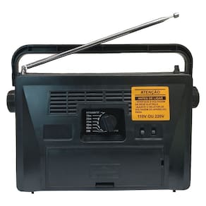 Caracteristicas: Antena Telescopica Inclinavel e Giratoria Recepcao FM Recepcao AM -OM e OC- |F.M ... 76 a 108 MHz OM ... 520 a 1710 KHz OC 62m ... 4,75 a 5,06 MHz OC 49m ... 5,95 a 6,20 MHz OC 31m ... 9,20 a 10,0 MHz OC 25m ... 11,6 a 12,20 MHz OC 19m ... 15,0 a 15,9 MHz Potencia de Saida : 1000 mW -RMS- Alto falante: 10,5 CM ? 8 Ohms Temperatura de Operacao: 0 a 50C Consumo -pilhas-: Minimo 35 mA Maximo 360m Alimentacao: 4 pilhas grandes -D- 1,5 volts -n fornecidas- Ou rede Eletrica de 127/230 volts AC -50/60 Hz-