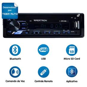 Radio MP3 1 Din Vipertron com Bluetooth e Comando Voz 4 Canais 45W Rms