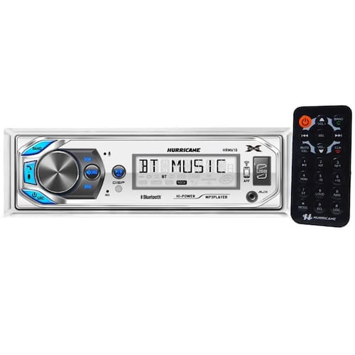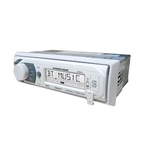 ESPECIFICAÇÕES: - Sistema de Rádio estéreo marinizado; - Rádio estéreo FM com 30 estações de memória; - Áudio com conexão sem fio BT; - Leitor de USB; - Tomada de entrada Aux 3.5mm ; - Conexão e Reprodução de áudio por dispositivos externos; - Reprodução de arquivos digitais de áudio MP3; - Painel com Visor em LCD; - Reprodução Memória/Repetir/Aleatória/Intro; - Controle do Mute/Relógio; - ID3 Tag Song para leitura de nome dos artistas e títulos de música; - Saída de 1 par de RCA + 2x Subwoofer; - Configuração eletrônico de áudio equalizador EQ ; - Armazenagem Automática de Memória pré-programada/Modo Scan; - Compatível com Xbass, App Android, App IOS & Modo Demo; - Recarregador USB; - Iluminação noturna; - Potência Máxima: 4x45W; - Conector ISO; - Seletor Modo Estéreo/Mono; - Controle de Áudio: 10EQ/Fader/Balanço, Agudo/Baixo/Grave; - EQ pré-programado: Flat/Pop/Rock/Class/Off; - Dimensões do produto: 4,5 x 7,1 x 1,97 polegadas.