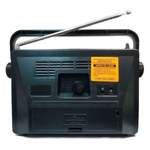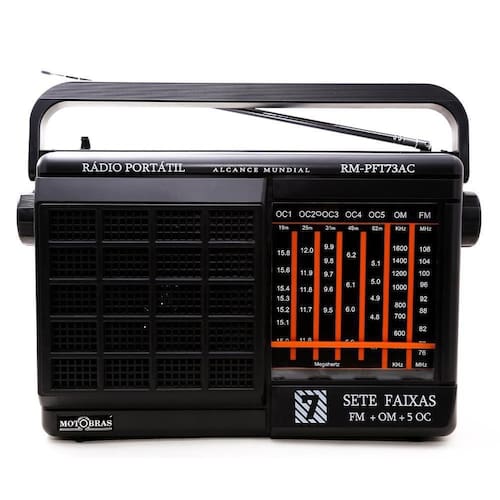 O rádio Motobras PFT73AC é uma excelente escolha de compra para você que gosta de ouvir suas músicas e estações de rádio com alta qualidade e fidelidade sonora. Seu visual retrô agrega charme para o aparelho, sem deixar de lado a qualidade dos produtos Motobras. Ele conta com 7 faixas de frequência: FM, OM, OC5, OC4, OC3, OC2 e OC1, que podem ser controlados através de uma chave localizada na parte traseira do produto. Este rádio Motobras 7 faixas possui potência de saída de 1000W RMS. As Ondas Curtas (OC) possibilita, em determinados horários, sintonizar emissoras de outros países. Este rádio simples é portátil e fácil de transportar, pois conta com uma alça na parte superior. Você pode também conectar seu fone de ouvido, para que tenha mais privacidade para curtir suas músicas preferidas. Outro ponto que vale a pena destacar, é que ele funciona por alimentação na tomada ou à pilha. Cor: Preto Voltagem: Bilvolt