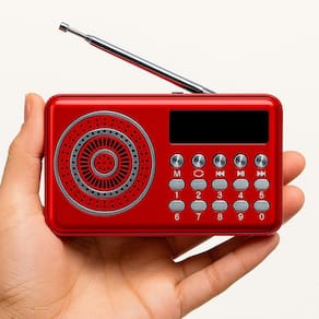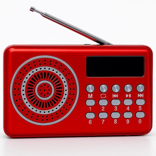 Possui sintonizador de rádio AM/FM, com antena retrátil para melhor recepção. O modelo funciona com bateria recarregável inclusa , oferecendo flexibilidade de uso em qualquer situação.