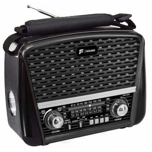 Praticidade é apenas um dos benefícios que você vai ter com o seu novo Rádio Portátil da F-Sound! Este modelo vem equipado com diversos recursos que permitem que você aproveite os mais variado conteúdos! Se você curte uma programação de rádio poderá utilizar as opções AM ou FM para sintonizar as noticias, programas e músicas que mais gosta, de maneira fácil, pois o Rádio Portátil F-Sound ainda conta com antena retrátil para melhor sintonia! Agora se você quer escolher o que escutar, também é fácil! Você poderá utilizar os recursos como Bluetooth para reproduzir músicas direto do seu celular ou notebook, além disso, também poderá conectar dispositivos via USB ou ainda utilizar a entrada SD para cartões de memória! Aproveite, compre o seu Rádio Portátil F-Sound agora mesmo!