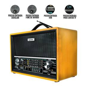 Radio Portatil Retro Com 4 Bandas Am Fm Sw Livstar Cor: Preto Radio Portatil Retro pra quem gota de qualidade e um visual diferenciado, e ao mesmo tempo moderno. Com várias funções, ela atende as necessidades de quem procura uma ótima opção de rádio e funciona a bateria recarregável