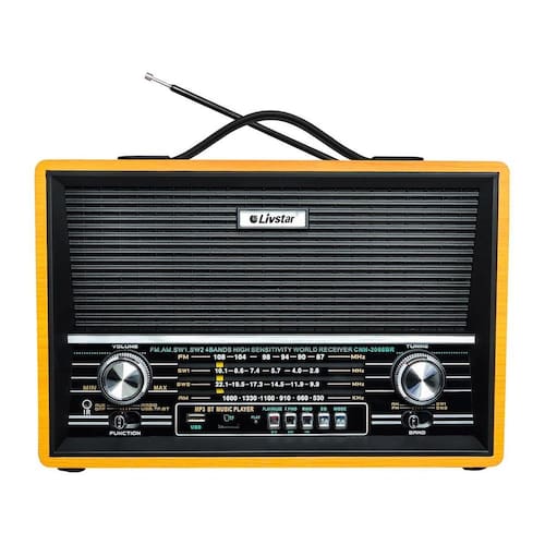 Radio Portatil Retro Com 4 Bandas Am Fm Sw Livstar Cor: Preto Radio Portatil Retro pra quem gota de qualidade e um visual diferenciado, e ao mesmo tempo moderno. Com várias funções, ela atende as necessidades de quem procura uma ótima opção de rádio e funciona a bateria recarregável