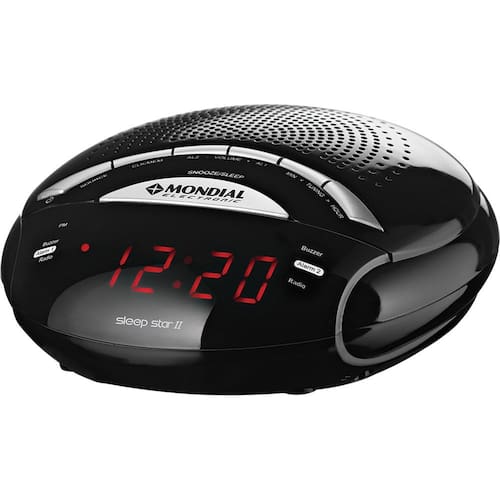 Não perca mais a hora de acordar. Este rádio relógio vai lhe ajudar a acordar sempre com disposição para mais um dia de trabalho. Podendo despertar com alarme ou rádio, ainda conta com função Sleep Timer e soneca, para você dormir mais um pouquinho e aproveitar o melhor do sono. E ainda pode se arrumar escutando suas estações AM ou FM prediletas. Com display digital e design moderno, funciona na tomada ou com pilhas, para que você não se preocupe mesmo que falte luz.