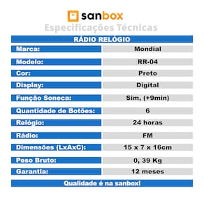 O Rádio Relógio Dual Alarm Preto Sleep Star IV Da Mondial RR04 é o acessório que falta para sua cabeceira! A Função DUAL ALARM permite programar 2 HORÁRIOS DIFERENTES para o despertador soar o alarme. Além disso, este aparelho permite que você salve até 20 estações na memória.