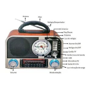 Informações do produto O Rádio Retro da XTrad XDG-30 é uma ótima opção pra você que gosta do estilo retro ,mas no mundo tão moderno ,não poderia faltar a modernidade nas funções como Bluetooth ,Bateria Recarregável, USB, SD Card,entrada Auxiliar tudo para facilitar sua vida e a retrocidade no design para deixar seu ambiente ainda mais estiloso. - Desing Simples - Conexão Bluetooth- Leve para onde quiser- Rádio multimídia - Bateria recarregável- Tomada 110/220 V- Antena embutida - AM/FM/SW-cartão SD Card - USB -entrada AUX-relógio Analógico Foto Ilustrativa