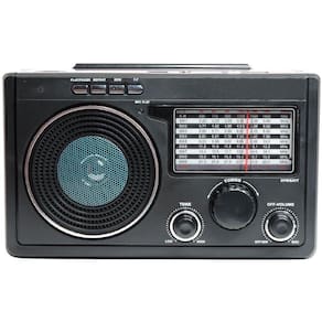 Rádio Retrô Cnn-686 Am Fm 3w Rms 4 Ohms Rádio Retrô Cnn-686 Am Fm 3w Rms 4 Ohms - Internacional O Rádio Retrô Cnn-686 Am Fm 3W RMS 4 Ohms é indispensável para quem gosta de som de qualidade, com ótima recepção fm/am ele também conta com entrada usb para pen drive, entrada para cartão sd e para fone de ouvido. Fácil de carregar, possui alça para transporte e funciona com Fonte 6V, a pilhas, com isso você ganha uma tranquilidade para se divertir onde, quando e como quiser. Informações do produto: Tipo: Rádio analógico Bandas: Am 530 - 1600KHz / Fm 88 - 108MHz / Tv 2-5CH / Sw 3.2 - 22MHz Alimentação: Fonte 6V ou 4 Pilhas D Potência: 3W Alto-falante: 4 Polegadas Entrada Fone de ouvido: Sim Entrada aux: Não Entrada Usb: Sim Voltagem: Bivolt 110V/220V Medidas: L= 26cm A= 15cm C= 8cm Alça: Sim Cor: Preto Conteúdo da embalagem: 01 Rádio 01 Cabo de força Atenção Antes de usar siga as instruções: Verifique se a chave de voltagem está na voltagem correta Homologação Anatel: 080281811799