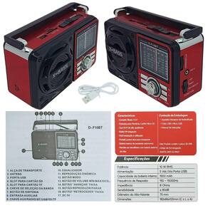 Rádio retrô grasep portátil analógico am/ fm bluetooth usb 10w Cor: vermelho rádio analógico retrô portátil am/fm / usb/pen drive/ sd