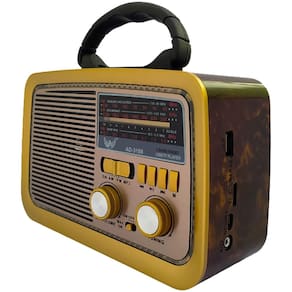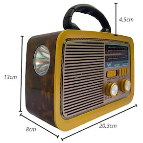 - Design retrô lindo - 3 Bandas AM, FM e SW - Alça de mão para transporte - 110V / 220V com chave de seleção manual - Com bateria interna e suporta 2 pilhas D
