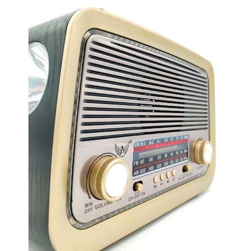Rádio Retro Vintage Am Fm Sw Usb Mp3 Bluetooth - Bivolt DESCRIÇÃO:Radio Retro Am/Fm/Sw com Entrada Usb, Cartão Sd, Pen Drive. Bateria interna recarregável e cabo de força pode ser ligado direto na tomada Radio traz o charme dos anos 70 com a modernidade dos dias de hoje com entrada para Pen Drive ,cartão de memoria SD/MMC e auxiliar . Radio AM/FM com o botão de sintonia e volume retro. Traz a modernidade do bluetooth e sem dizer que e uma ótima peça de decoração . Entradas: Usb/Sd/Aux. Bateria interna Fm: 88-108MHz Am: 530-1600KHz Sw: 5.9 - 18.0mhz Potência de saída: 5W Alimentação :110v / 220V 2 Pilhas tipo D (Grande). Potência da lanterna Lateral Led: 0.5W Medida: Altura = 16 cm x Largura = 21,5 cm x Profundidade = 8,00 cm ITENS INCLUSOS: 1- Rádio 1- Manual 1- Cabo de energia para carregar 1- Alça para transporte Marca: Fi
