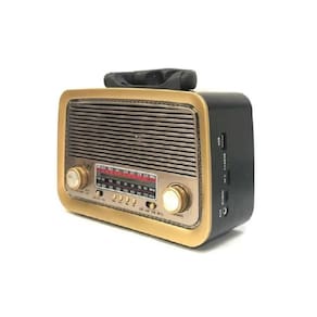 Rádio Retro Vintage Am Fm Sw Usb Mp3 Bluetooth - Bivolt DESCRIÇÃO: Radio Retro Am/Fm/Sw com Entrada Usb, Cartão Sd, Pen Drive. Bateria interna recarregável e cabo de força pode ser ligado direto na tomada Radio traz o charme dos anos 70 com a modernidade dos dias de hoje com entrada para Pen Drive ,cartão de memoria SD/MMC e auxiliar . Radio AM/FM com o botão de sintonia e volume retro. Traz a modernidade do bluetooth e sem dizer que e uma ótima peça de decoração . Entradas: Usb/Sd/Aux. Bateria interna Fm: 88-108MHz Am: 530-1600KHz Sw: 5.9 - 18.0mhz Potência de saída: 5W Alimentação :110v / 220V 2 Pilhas tipo D Grande . Potência da lanterna Lateral Led: 0.5W