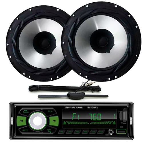 Eleve o padrão do sistema de áudio do seu veículo com o Kit Rádio JBL Celebrity 100. Este conjunto combina o Rádio JBL Celebrity 100 com conectividade Bluetooth, USB, SD, FM e entrada AUX com um par de Alto Falantes JBL 6TRFX55, oferecendo uma experiência sonora poderosa. O Rádio JBL Celebrity 100 permite que você desfrute da conveniência do streaming de música via Bluetooth, reprodução de arquivos locais a partir de USB ou SD, sintonização de estações FM e conexão com outros dispositivos por meio de entrada AUX. Com um design elegante e controles intuitivos, este rádio transforma suas viagens em uma experiência musical envolvente. Os Alto Falantes JBL 6TRFX55 entregam um som de alta qualidade com impressionantes 110 Watts RMS por par. Você desfrutará de agudos cristalinos, médios nítidos e graves robustos para uma experiência sonora equilibrada. Completando o kit, uma antena garante uma recepção de sinal nítida para sua estação de rádio favorita. Este conjunto é a escolha ideal para quem busca aprimorar o sistema de som do carro com produtos de qualidade. Curta suas músicas com clareza e potência com o Kit Rádio JBL Celebrity 100.