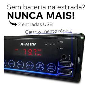 Bem-vindo a koala parts a sua escolha certa para peças e acessórios automotivos - há mais de 10 anos oferecendo qualidade e confiança. Rádio som automotivo mp3 com bluetooth 2 usb's entrada auxiliar e display led Conectividade sem limites Conecte seu smartphone via bluetooth e desfrute de suas músicas favoritas ou atenda suas chamadas hand-free Potência e qualidade sonora Experimente a melhor qualidade de som com a potência de 4x25w rms que oferece equalização ajustável para se adequar ao seu estilo musical preferido, seja pop, rock, clássico ou flat. Puro estilo - display de led O design elegante com iluminação de painel na cor azul não só adiciona um toque de sofisticação ao interior do seu veículo, mas também facilita a visualização das funções e do relógio digital. Praticidade ao alcance Com entradas usb para pen drive e carregamento de celular, garantindo que você esteja sempre conectado e seus dispositivos sempre carregados, mesmo durante longas viagens. Especificações técnicas: - suporte para chamadas telefônicas mãos-livres hands free ; - entrada de áudio aux; - equalização: pop/rock/class/flat; - compatível com mp3/wma/wav; - alimentação: 12v; - potência: 4x25w; - entrada cabo rca; - entrada usb para pendrive: até 32gb; - entrada usb 2.1a para carregamento de celular; - modo de reprodução: repetido/aleatório/intro; - display de led: azul; - relógio digital. Medidas do produto: - comprimento: 18,5cm - largura: 3.5cm - altura: 5,5cm Medidas da embalagem: - comprimento: 20cm - largura: 8cm - altura: 6,5cm Conteúdo da embalagem - 1 auto radio mp3 h-tech 1025 Recomendamos que a instalação seja feita por um , não nos responsabilizamos pelo mal uso do produto. do vendedor: 1 meses Homologação Anatel: 005491708855