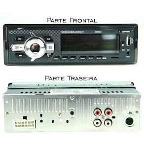 Ficha Técnica: Display de LED com Iluminação; Botões com Iluminação em LED; Entradas USB e Micro SD Card; Entrada Auxiliar P2 de 3,5mm; Suporte para Formato de Música MP3 e WMA; 4 Canais de Áudio; Máxima Potência de Saída: 4x 25W RMS; Saídas RCA; Função Blueth para Músicas e Chamadas Telefônicas; Possui Microfone Integrado; Função RelógioMudo; Rádio FM com Busca Automática de Estações; Memória para 18 Estações de Rádio; Frequência FM: 76 – 108MHz; Equalizador Pré-definido: Pop, Rock, Classic e OFF; Impedância do Alto Falante: 4 - 8 Ohms; Tensão: 12VDC; Medidas Aproximadas LxAxP: 18 x 5,5 x 11cm