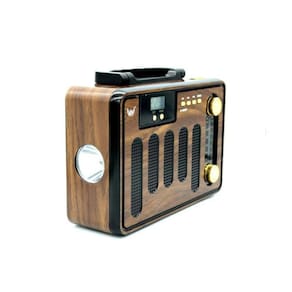 Este é um rádio estilo retro, com Bluetooth, entrada para Pen drive e cartão de memória. Ele é construído em matérias de alta qualidade, gerando um ótimo acabamento. Possui uma ótima captação de rádio AM/FM/SW. Pode ser usado diretamente na tomada 110/220v, ou fora dela, com sua bateria recarregável de ótima autonomia.