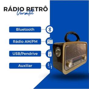 Rádio vintage retrô antigo bluetooth usb am fm usb led potente Atenção: cores enviadas aleatoriamente funciona também direto na tomada Características - rádio am/fm/sw em 3 bandas - bluetooth - entrada usb - entrada auxiliar - cartão sd/tf - com bateria recarregável - antena para sintonizar rádio - possui luz led decorativo - com lanterna led - produto bivolt: com chave para mudar a voltagem: 110v/220v Especificações - marca: altomex - modelo: a-3188bt - potência: 5w - rms: 3.0 alto falante 4ohms - alimentação: bateria recarregável ou pilha d grande não incluso - ac: 110v/60 hz - 220v/50hz - frequência fm: 88 -108 mhz - frequência am: 530 - 1600 khz - frequência sw: 5.9 - 18 mhz - ac/dc alimentação - dimensão lxaxp : 20,5 cm x 14 cm x 8 cm Itens inclusos: - 01 rádio portátil a-3199bt - 01 cabo de alimentação Homologação Anatel: 118782214976 Marca: Não Informado