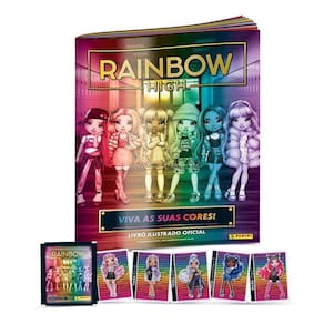 Uma escola onde a criatividade é tudo que interessa! Em Rainbow High, os alunos aprendem e colocam seus talentos em prática na área que mais tem a ver com a essência artística de cada um: seja criando roupas, fazendo música, escrevendo, fotografando ou dirigindo filmes, o importante é se expressar, sempre com muito glamour. Neste livro ilustrado, a Panini mostra todo o estilo e os segredos das garotas em uma coleção de 176 cromos, sendo 32 deles holográficos, além de um pôster megacolorido com adesivos de looks para combinar!