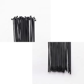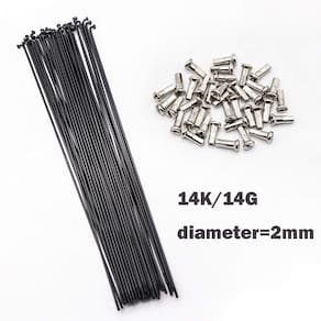 Vários tamanhos disponíveis, variando de 80 mm a 297 mm, escolha o tamanho que se adapta à sua bicicleta. Os materiais prata e preto são diferentes, os raios pretos são feitos de aço nº 45, os raios prateados são feitos de aço inoxidável. - Material: os raios pretos são feitos de aço #45, os raios prateados são feitos de aço inoxidável. - TAMANHO: Vários tamanhos disponíveis, variando de 80 mm a 297 mm, escolha o tamanho que se adapta à sua bicicleta. Diâmetro: 2 mm - Modelo: raios 14G - Incluído na embalagem: 36 x raios 36 x bicos - O comprimento dos raios dependendo do aro, dos cubos e do seu método de tecelagem. Portanto, não temos sugestões sobre isso, você pode medir seus raios antigos primeiro, confirme antes de fazer um pedido.