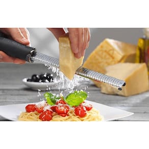 Ralador Classic Zester Preto Microplane Desenvolvido pela americana Microplane o ralador zester combina alta precisão, qualidade e design sofisticado com tecnologia de ponta. Ótimo para raspar cítricos ou ralar queijo duro, gengibre ou chocolate. Dentes ultra afiados com uma alta durabilidade. O famoso Zester Blade Style cria um resultado de ralar muito fino e é ideal para tudo o que você deseja que seja ralado finamente. cabo macio e emborrachado que proporciona conforto durante o manuseio. Possui furo no cabo para pendurar o utensílio quando não estiver em uso. Apliques de borracha antiderrapantes na extremidade, para evitar acidentes e arranhões na mesa de trabalho. Capa de proteção própria para armazenamento. Pode ir na lava-louças. A lâmina mede 19,5cm de comprimento e largura de 2,5cm. Material: Aço inox Cor: Preto Peso: 120g